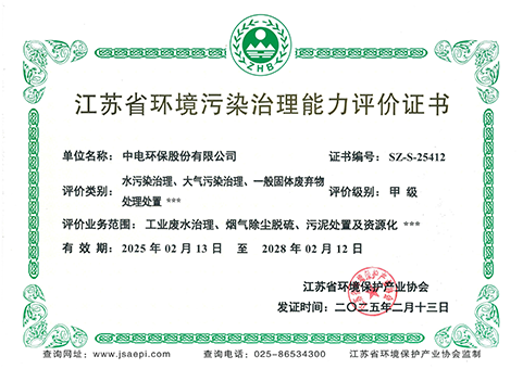 江蘇省環(huán)境污染治理工程設(shè)計(jì)能力甲級(jí)