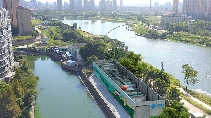 治理措施:采用“源頭截污、就地凈化、集散結合、清水回補”的思路,采用自主研發(fā)的 “懸浮床” 及“三相增強”生物膜反應器等核心技術,運用污水模塊化裝置(CBS),在河道、泵站前池、污水匯集區(qū)域就近設置,為城市內(nèi)河、流域斷面水質(zhì)達標提供保障。